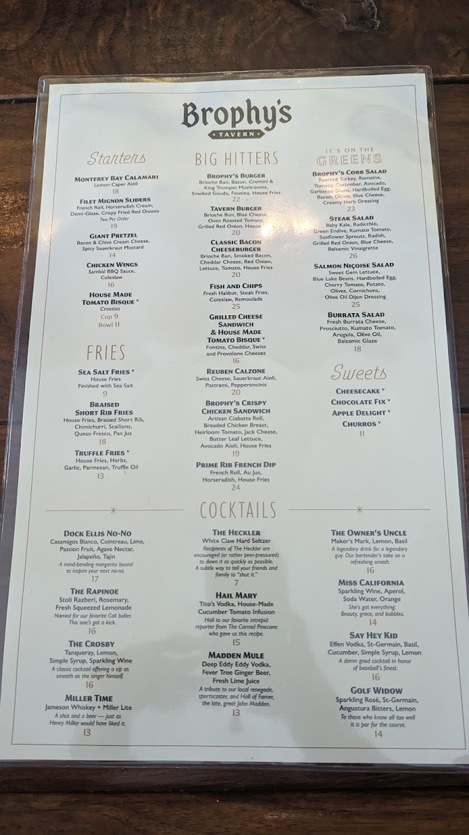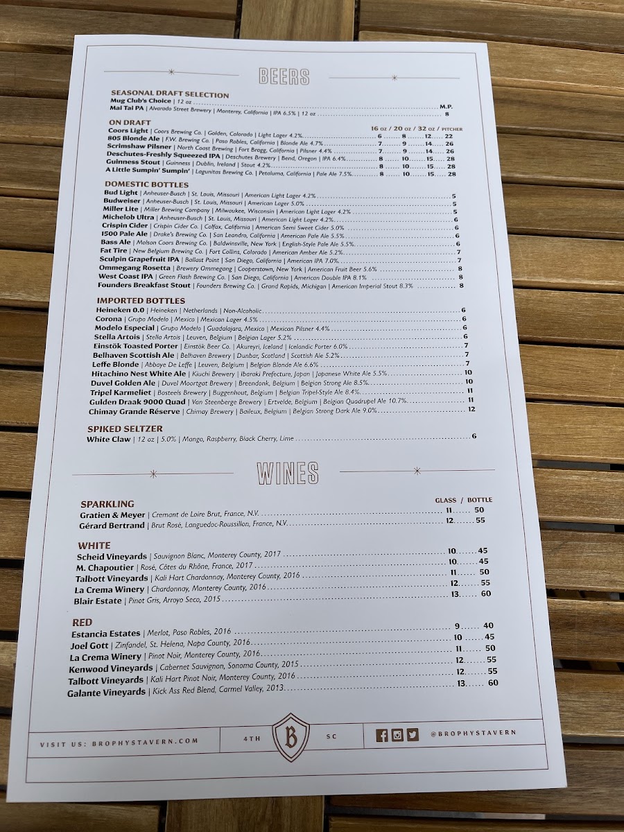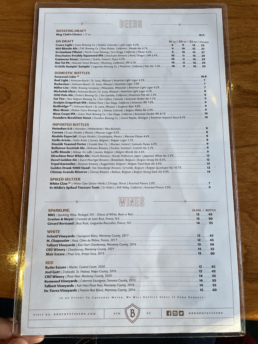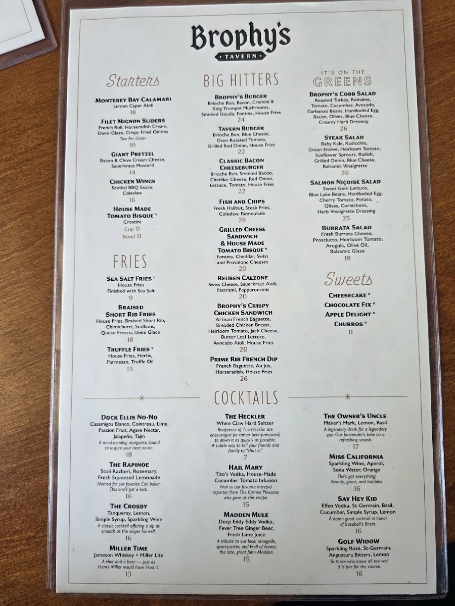In summary, Brophy's Tavern is a beloved local haunt that encapsulates the spirit of Carmel-By-The-Sea. With its inviting atmosphere, hearty menu, and exceptional service, it promises a culinary experience that will leave you satisfied and eager to return for more. So grab a seat, raise a glass, and let Brophy's Tavern become your new favorite spot in town!